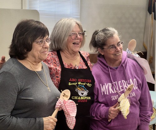 Our seniors had a SOUPER lovely afternoon at our first soup cook-off! Big congratulations to Sadie, Rhonda, and Melissa for taking home the top honors. It takes a lot of patience to get a soup just right, so they must have some serious kitchen skills. We had a total of 13 "soup chefs" and even a special entry from Tim Batten!